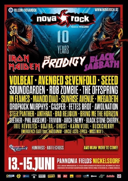 Folyamatosan igyekszünk hírt adni a külföldön zajló legnagyobb fesztiválokról is. Arról már beszámoltunk, hogy az év legnagyobb metal fesztiváljának az idén 25. születésnapját ünneplő Wacken fesztivált tartják. Nem véletlen, hiszen a 2014. július 31 és augusztus 2 között megrendezésre kerülő fesztiválra mindössze 48 óra leforgása alatt elkelt mind a 75 ezer belépőjegy. Ez a fesztivál történetében nem újdonság, hiszen zsinórban ez már a kilencedik alkalom, hogy elővételben elkelt az összes jegy, de ilyen rövid idő alatt még sosem lett teltházas a fesztivál. Hasonlóan nagy esemény lesz a jövőre épp 10 éves osztrák Nova Rockfesztivál, amely június 13. és 15. között kerül megrendezésre. A fesztivál első nagy bejelentése a Black Sabbath koncertje volt, de már sokkal több híresség fellépését is közzétették a szervezők.