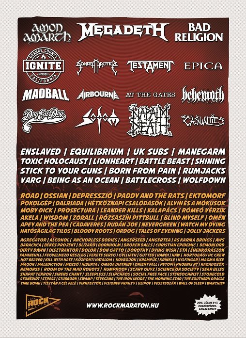 Idén tíz napos lesz a Rockmaraton! 2016. július 8-17. között rendezik meg ez lesz a világ leghosszabb rockfesztiválja, a helyszín pedig változatlan, a tavaly jól bevált hely, a Dunaújváros melletti Szalki-szigeten kerül megrendezésre a világtörténelem leghosszabb rockfesztiválja, a 10 napos Rockmaraton. A maratoni nyaralást és mulatást egy hangulatos, árnyékos kemping, saját strand és közel 150 zenekar teszi majd felejthetetlenné. Összesen 30 külföldi banda lép fel az idei Rockmaratonon, valamint több, mint 100 magyar. Elkészült a napi bontás: