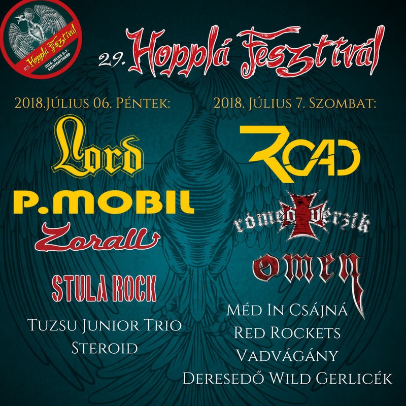 29. alkalommal kerül megrendezésre a Hopplá Zenei Fesztivál Szentgotthárdon, 2018. július 6-7. között. A nagy hagyományokkal rendelkező fesztivált helyi zenekarok indították útjára anno, mára pedig már olyan headlinerekkel büszkélkedhet, mint a Road, a P. Mobil, a Zorall, a Lord, a Rómeó Vérzik, és az Omen.