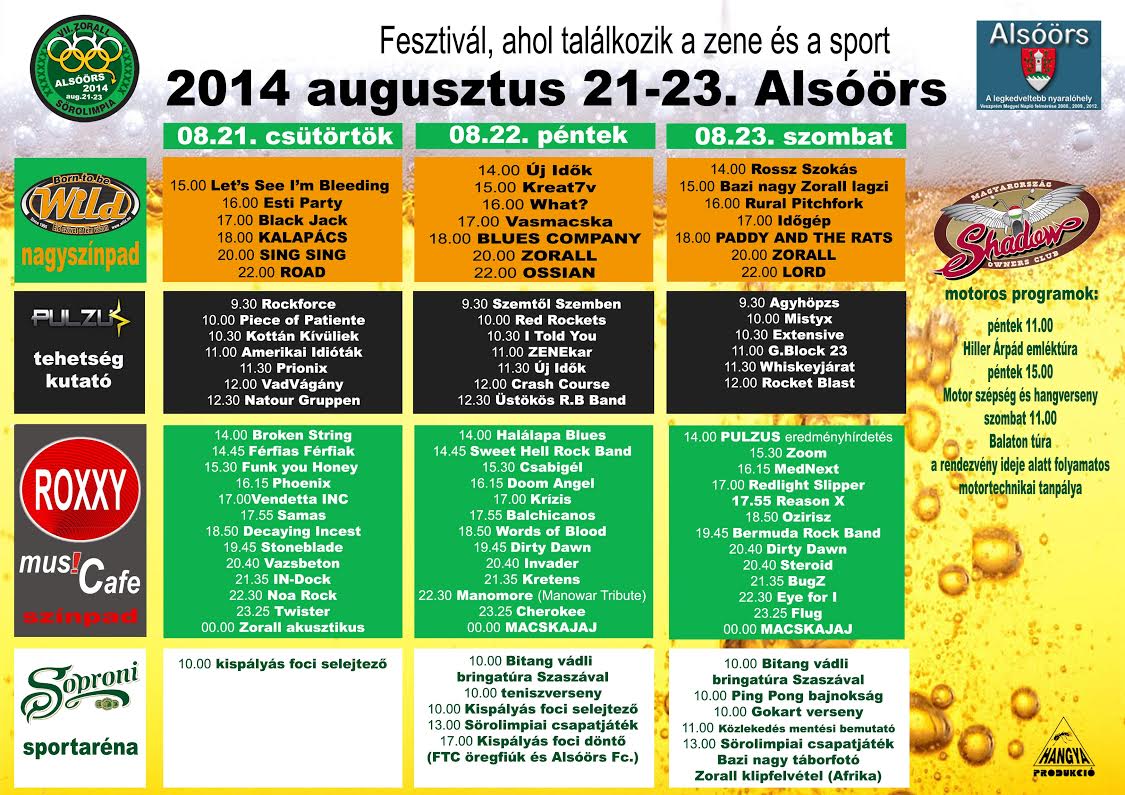 A fesztivál programjában olyan fellépők neve szerepel, mint az Ossian, a Lord, a Road, a Paddy and The Rats, a Sing Sing, a Kalapács és a Zorall. Bővebb infó a programról az alábbi helyeken: