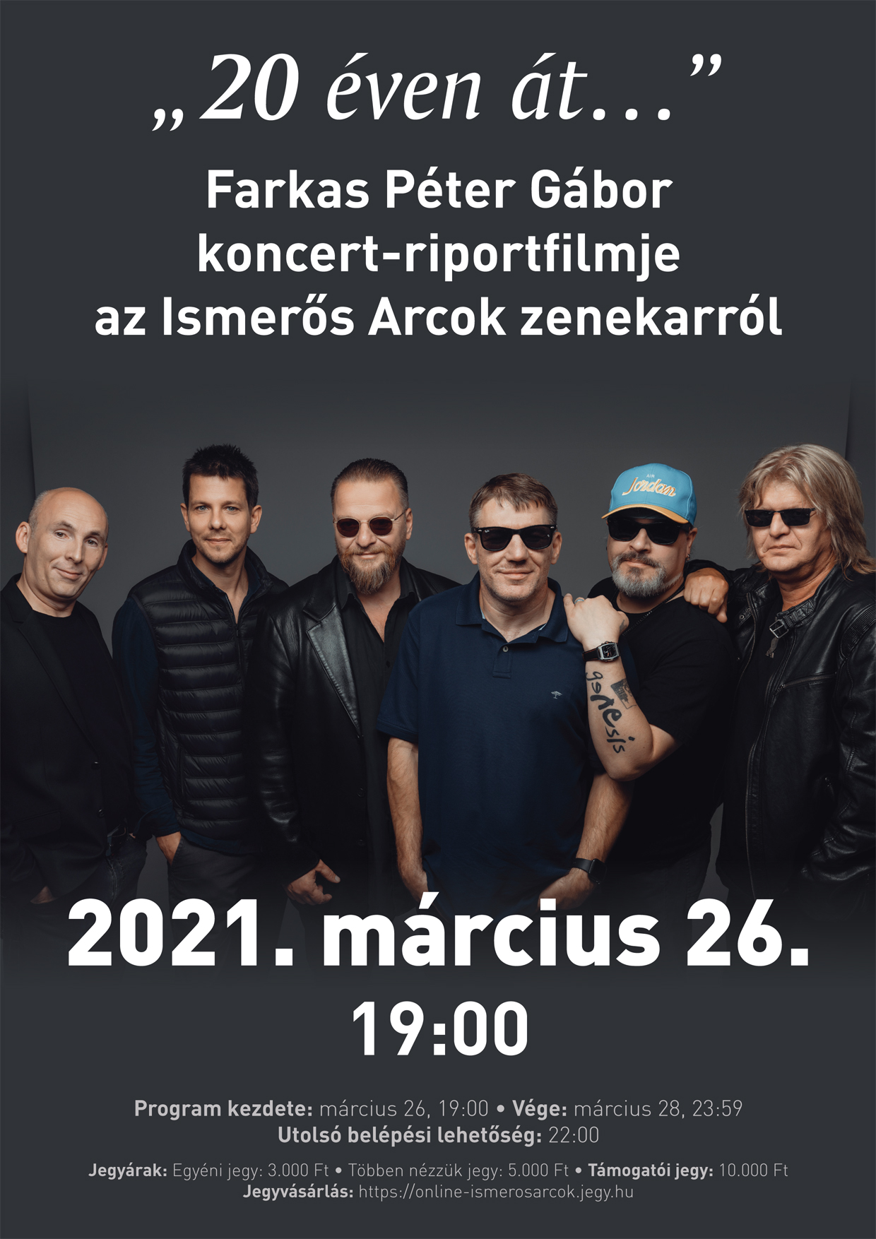 A 20 éves jubileumát tavaly ünneplő – Máté Péter díjas és Teleki Pál érdeméremmel kitüntetett – Ismerős Arcok zenekar 2021. március 26-án 19 órakor tartja a különlegességnek számító és az együttes életében is egyedülálló koncert-riportfilmjének a bemutatóját.