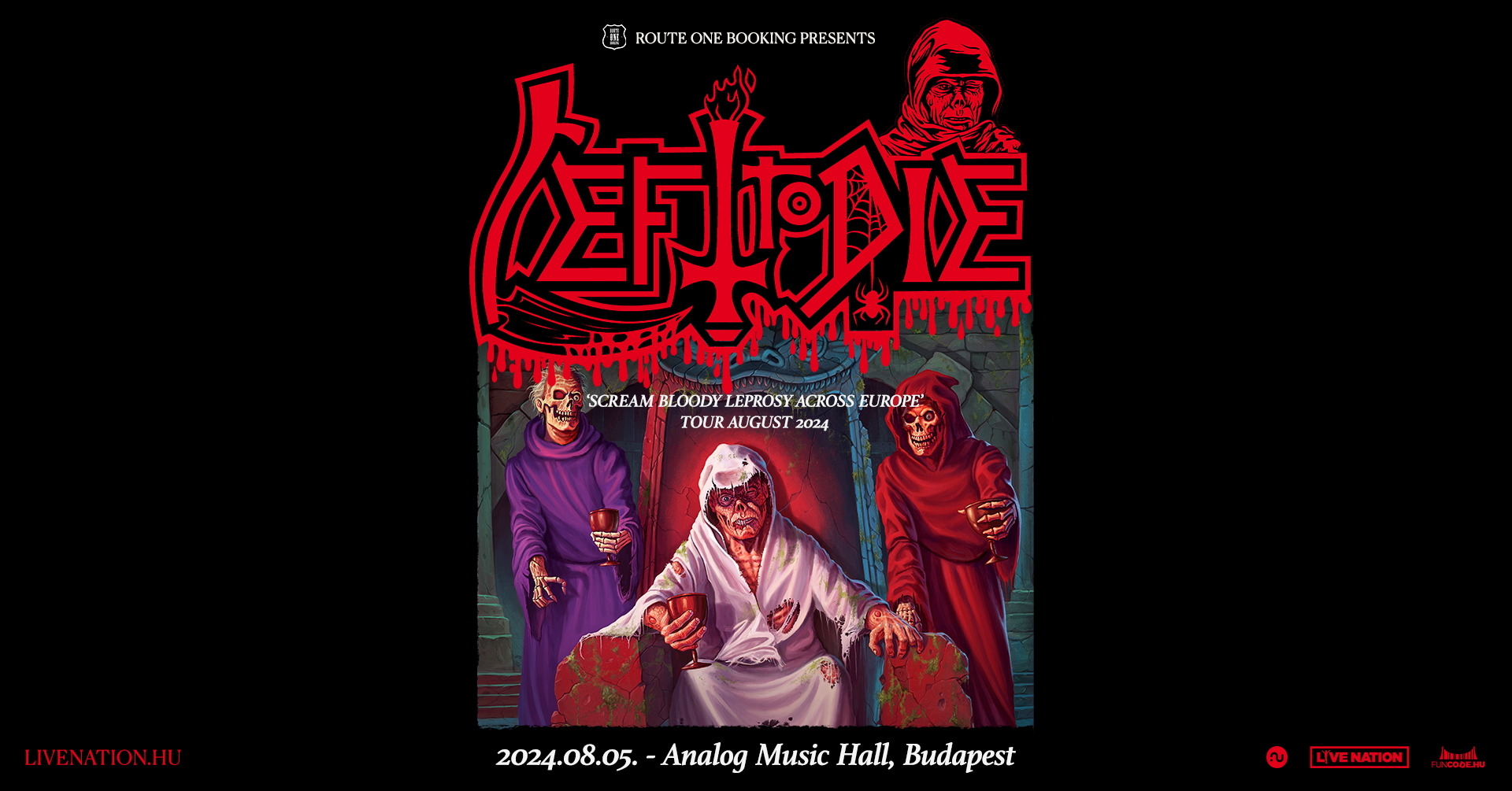 megtiszteltetés ennyi év után ismét játszani a Leprosy-t. Több, mint harminc év telt el azóta, hogy Rick és én közösen játszottuk ezeket a dalokat és Matt és Gus a tökéletes társak ehhez. Hatalmas Death rajongók és tehetséges zenészek, akik erre az útra csatlakoztak a Left to Die- hoz.” A tisztelgéshez pedig mi is csatlakozhatunk egy velőtrázó death metal esten augusztus 5-én, az Analog Music Hallban. Jegyek elérhetők a www.livenation.hu oldalon.