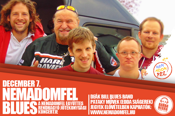 Három zenekar, akiket a zene közös nyelve kapcsol össze. A NEMADOMFEL 2014-es év végi jótékonysági koncertjén a főszerepet a szeretet, a blues és rockzene kapja. Deák Bill Gyula és a Nemadomfel Együttes kapcsolata hosszú évekre nyúlik vissza, a Pataky Művekzenekar tagjaival pedig 2014 nyarán két alkalommal is közösen táboroztak a nemadomfelesek, így az ismerkedés nem a színpadon kezdődik majd.