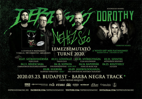 „A rajongók és a szakma is azt az egybehangzó visszajelzést adta számunkra, hogy az utóbbi idők legerősebb Depresszió lemezét készítettük el. Ez a koncertek látogatottságán is meglátszott, mert az eddigi legsikeresebb szezonunkat zártuk. Nagyon örülünk ennek a fogadtatásnak, és bízunk benne, hogy a tavaszi turné is ilyen örömteli lesz. A műsor felépítésében törekedtünk arra, hogy extra tartalommal tudjunk szolgálni. Ahol csak belefér a műsoridőnkbe, ott a Nehéz szó mind a kilenc dalát eljátsszuk, valamint egy összeállítást az elmúlt 20 évünkből. Különleges vendégként az egyre népszerűbb Dorothy zenekar csatlakozik hozzánk.” – foglalta össze Halász Ferenc énekes, gitáros az aktualitásokat.