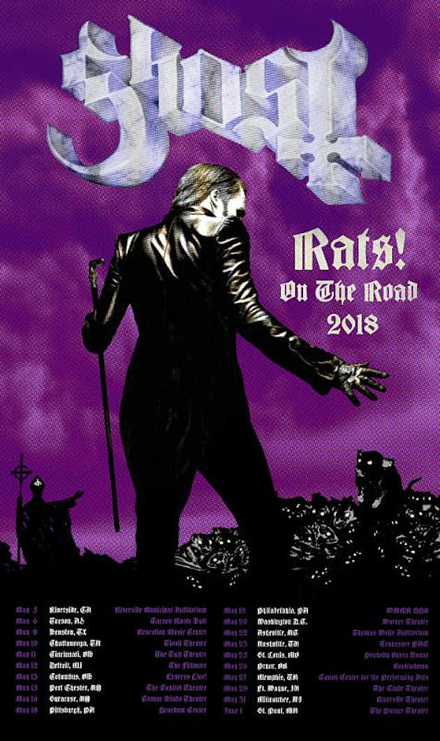 Az okkult rocker Ghost új stúdióalbuma, a 2015-ös Meliora album folytatása, várhatóan a nyár elején jelenik meg, a Rats című első kislemeznóta pedig már ebben a hónapban megjelenhet. A svéd banda negyedik lemezén is egy “új” Papa Emeritus szerepel majd, akinek bemutatását egy Chapter One: New Blood elnevezésű videó vezeti fel. A Tom Dalgety producerrel (Opeth, Royal Blood) rögzített friss anyagot Andy Wallace (Slayer, Nirvana stb.) keverte.