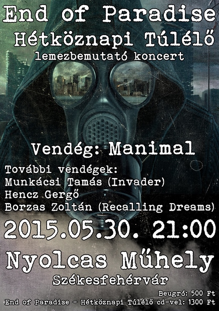 Hétköznapi túlélő. Ezzel a címmel fog májusban, a Nail Records gondozásában megjelenni a székesfehérvári End of Paradise új lemeze. A korong kilenc nótát fog tartalmazni és a lemezen közreműködik az Invader bárdistája, Munkácsi Tamás is. Az új lemezhez egy klip is készülni fog, még hozzá a címadó dalra. A május közepén megjelenő lemezhez természetesen lemezbemutató is dukál, mely május 30-án, a székesfehérvári Nyolcas Műhelyben kerül megrendezésre. A vendégzenekar a Manimal lesz, és fellép még Hencz Gergő, Borzas Zoltán a Recalling Dreamsből és természetesen Munkácsi Tamás is.
