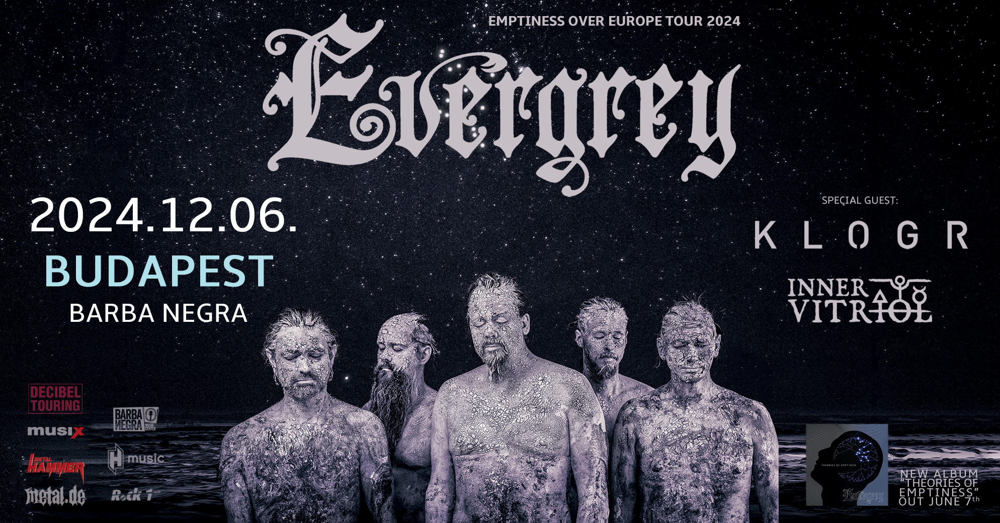 THEORIES OF EMPTINESS címmel június 7-én jelent meg az új Evergrey lemez, melyet a svéd csapat egy masszív európai turnéval ünnepel . A budapesti állomás a Barba Negrában lesz december 6-án, az estét pedig az alternetív metal brigád, a Klogr nyitja majd.