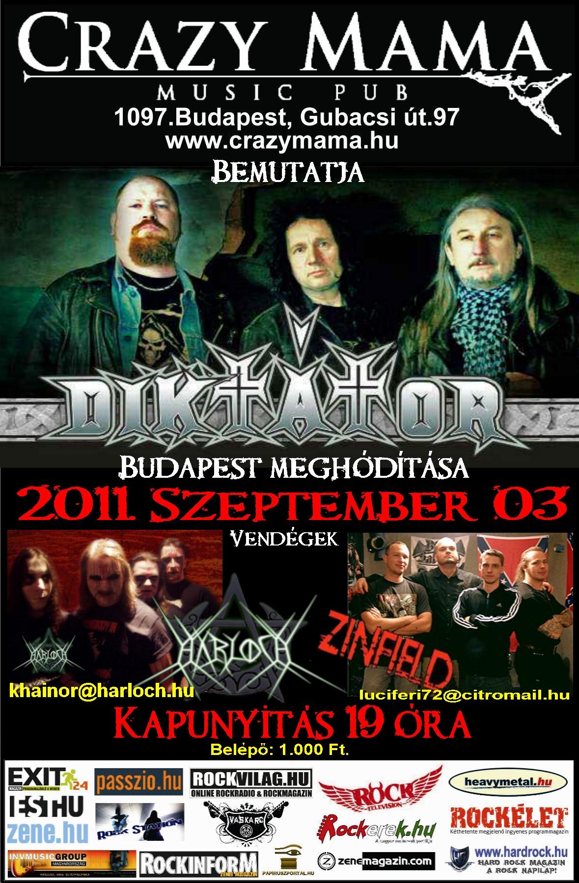 A 25 éves Diktátor zenekar nagy célt tűzött ki maga elé. Meghódítani Budapesten, mindenáron. Már az időpontot és a helyet is kitűzték: 2011.09.03. Crazy Mama Music Pub. Ezen a helyen és napon szabadítják rá magukat a fővárosra és 11 kiadott lemezzel a hátuk mögött ez a terv sikerülni is fog nekik.