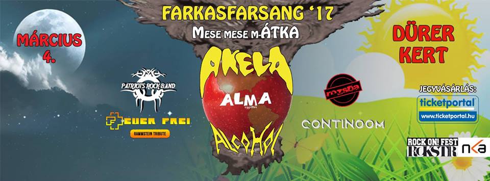 A nagy sikerre és a megszokásra való tekintettel idén újra lesz AKELA farsang a Dürerben, azaz az évek alatt hagyománnyá vált Farkas Farsang. A március 4-i program pedig ebben az évben még az eddigieknél is izgalmasabbnak ígérkezik, hiszen az estét ez alkalommal nem más, mint az ALMA EGYÜTTES nyitja majd meg. Aztán a páratlan bemelegítés után indul a véresen komoly farkas-mulatság, ahol jobbnál-jobb fellépők váltják majd egymást a színpadon. Így zenél többek között az álruhába bújt rajongóknak a Continoom és a Rozsda, valamint a Patriots Rock Band után az Alcohol, végül pedig a buli névadója és szervezője, az Akela csapata is. Az idei Farkas Farsang azonban még az Alma Együttes fellépésén túl is tele lesz különlegességekkel, ugyanis itt mutatkozik be az Akela új dobosa is. A koncerten persze vendégek is szép számmal megjelennek majd: Szizsó Szilágyi Zsolt (Partyzan, ex-Carmen), valamint Szizsó Szijártó Zsolt Szupermen (Kárpátia) is beszállnak a showba egy pár dal erejéig.