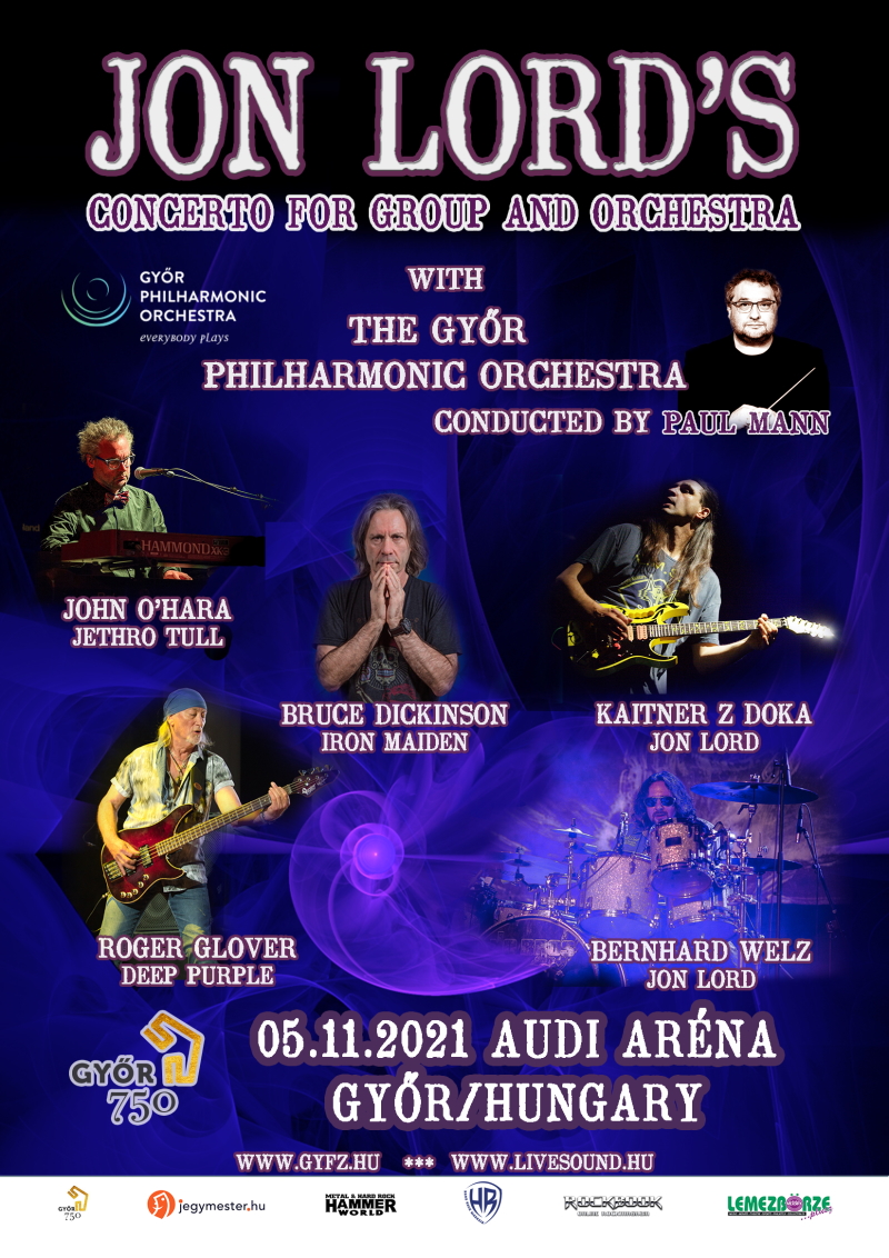 November 5-én a Győri Filharmonikus Zenekar és a rockzene világsztárjai közösen adják elő Jon Lord, a néhai Deep Purple-billentyűs Concerto For Group And Orchestra című művét a győri Audi Arénában. A koncerten olyan nagy nevek lépnek színpadra, mint Bruce Dickinson (Iron Maiden) és Roger Glover (Deep Purple), a legendás szimfonikus mű előadásában részt vesz továbbá Kaitner Z Doka gitáros (Jon Lord, Ian Paice, Don Airey) és Bernhard Welz dobos (Jon Lord, Don Airey), billentyűs hangszereken pedig John O’Hara (Jethro Tull) játszik. A Győri Filharmonikusokat az a Paul Mann (Jon Lord, Deep Purple, LSO) vezényli, aki már 1999-ben is dirigálta a mű előadását a Royal Albert Hallban, illetve rendszeresen felbukkant Jon Lord Deep Purple utáni szólókarrierje során.