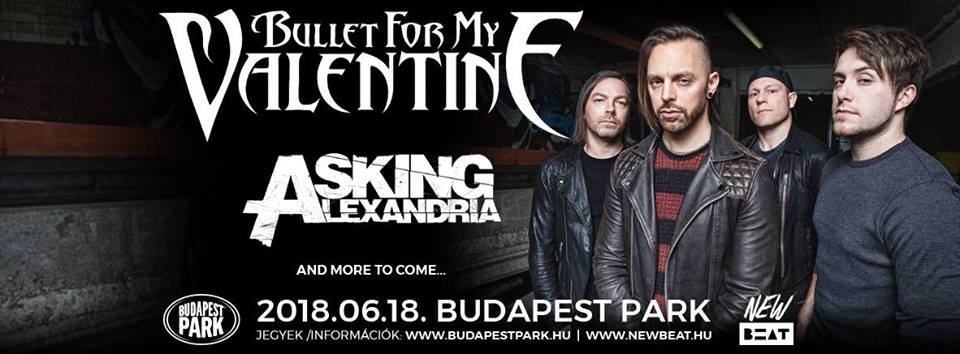 Ahogy már megszokhattuk a Budapest Park és a New Beat jövőre is igyekszik minden műfaj rajongójának örömet szerezni, ezúttal a metál szerelmeseinek hozunk jó híreket: 2018. június 18-án a walesi metalcore formáció, a Bullet For My Valentine koncertezik nálunk, partnerük pedig az Asking Alexandria lesz. Zúzásra fel!A metalcore színtér két súlyos szereplője – és még további be nem jelentett vendégek – már biztosan borzolják majd a hajakat jövő nyáron. A Bullet For My Valentine még sosem volt headliner koncerten nálunk, utoljára 2016-ban jártak nálunk a Sziget Fesztiválon, nem sokkal legutóbbi lemezük a Venom megjelenése után, de Matt Tuck frontember egy korábbi Twitter üzenetéből következtetve az sem kizárt, hogy hozzánk már friss anyaggal érkeznek. A walesi banda a kétezres évek egyik legmeghatározóbb metál zenekarává vált, több millió eladott lemezzel és óriási rajongói bázissal nemcsak Európában, de Észak-Amerikában és Japánban is. Zenéjük az agresszív riffek, fejletépő zúzás és szenvedélyes dallamok elegye, virtuóz játékkal megfejelve.