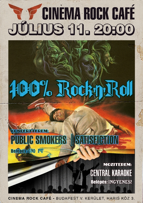 Az est mottója: 100% rock’n’roll, melynek keretén belül karcos, blues-rock alapokon nyugvó hangkarakterű énekessel színpadra lépő formáció, és a lendületes elvont zenei világ is szerephez jut az est folyamán. Különböző alapok, hatások és elképzelések szülte muzsika árad a koncertterembe látogatók irányába a Public Smokers és a Satisfiction zenekarok jóvoltából, miközben a vendég kényelmesen ülhet italával, vagy ha elkapja a hangulat, tempótól függően bólogat/táncol a felcsendülő dallamokra. A programban kakukktojásként hatott a vidám perceket okozó műsorával készülő hadi-rokkant nyugdíjas vidám zenekarként aposztrofált Stoppage, fellépésük sajnos ezúttal elmarad, pótlása egy későbbi időpontban várható!