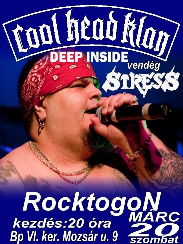 Nem pihennek Molics Zsolték a kiválóan sikerült Tim “Ripper” Owens buli után sem, hiszen a Crazy Mama falait megrengető bulit követően, most a Rocktogont igyekszik bevenni a kiváló formában lévő Cool Head Klan zenekar. Hamarosan megjelenik a CHK vadonatúj nagylemeze, de addig a koncerteké a főszerep. Március 20-án, szombaton a Rocktogon falai között lép fel a Cool Head Klan, akiket azúttal a Deep Inside, és a Stress zenekar kísér el.