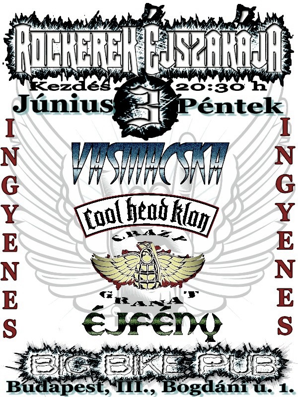 Idén ötödjére kerül megrendezésre a Rockerek éjszakája a Cool Head Klan jóvoltából. A helyszín a már megszokott Big Bike Pub és a belépő ára sem lett megfizethetetlen. Az eseményen részt vesz a már tavaly is fellépett Vasmacska, valamint csatlakozik a Crazy Granat és az Éjfény is.