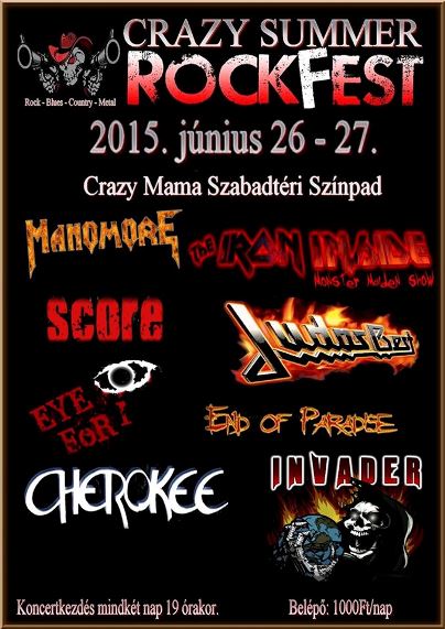 Ha június utolsó hétvégéje, akkor Crazy Summer Rockfest a Crazy Mamában! Az immáron több éves hagyományt folytatva, június 26-án és 27-én ismét remek zenekarokkal népesül majd be a Crazy Mama szabadtéri színpada. Az első napon elsősorban a tribute zenekaroké a főszerep, hiszen ott lesz a Manomore ( Manowar Tribute), a Judas Best is érkezik a Judas Priest legnagyobb slágereivel, és a Maiden fanoknak zenél majd az Iron Inside. Az estét a Score zenekar nyitja.