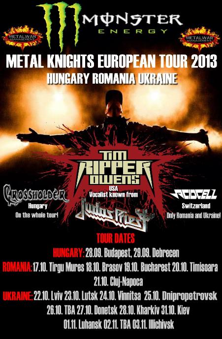 Korábban már hallottunk arról, hogy a Crossholder csapatnak egy álma vált valóra, mikor vettek egy kétemeletes turnébuszt. Erre azért is volt szükség, mert tudni lehetett, hogy egy közismert világsztárral fognak turnézni, akinek kilétét, akkor még nem árulták el. Mostanra kiderült, hogy az úriembert Tim Ripper Owensnek hívják. A neves énekessel indul közös körútra a Crossholder zenekar. A svájci Acidell is csatlakozik a romániai és az ukrajnai állomásokhoz, 2013. október 17-től. Nemrég az is kiderült, hogy a budapesti koncerten kívül, mely a Crazy Mama klubban lesz metartva 2013. szeptember 28-án, egy debreceni bulit is beiktattak a szervezők, szeptember 29-re a Roncs Bárba. Ezután egy kis szünet következik és október 17-én már Romániában folytatódik, majd Ukrajnában ér véget a turné, 2013. november 3-án. A dátumokat a mellékelt plakáton láthatjátok.