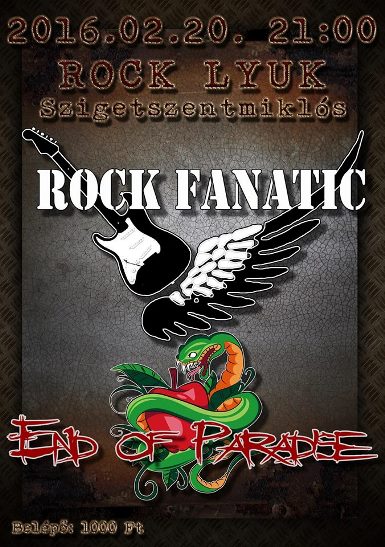 Február 20-án egy igazán ütős estre számíthatnak azok, akik a szigetszentmiklósi Rock Lyukat választják buli helyszínnek. A székesfehérvári End of Paradise tavaly jelentkezett legújabb lemezével, melynek címadó dalára készült klipet alább nézhetitek meg. A lemezt mind a szakma, mind a nagyközönség igen pozitívan fogadta. Az este másik zenekara a budapesti Rock Fanatic, akik minden idők legnagyobb magyar slágereivel szórakoztatják majd a nagyérdeműt.