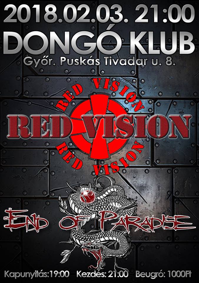 Február 3-án ismét közös koncertet ad a székesfehérvári End of Paradise és a mosonmagyaróvári Red Vision. A két banda sok közös vonással bír, hiszen mindkettőnek tavaly ősszel jelent meg új lemeze, és mindkettő nemrégiben jelentkezett új klippel. A két csapat a tavaszi szezonban még legalább kétszer koncertezik együtt, az első állomás pedig a győri Dongó.