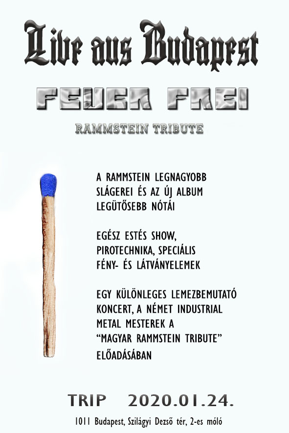 2019 májusában, 10 év után megjelent az új Rammstein stúdióalbum, a németek pedig egy nagyszabású stadionturné keretében mutatták be az új lemezt és folytatják ezt 2020-ban is… de Magyarországra sajnos nem ér el a turnéjuk. A Feuer Frei – a „magyar Rammstein Tribute” – ezért úgy döntött, helyettük fogja bemutatni az új albumot és egyben megünnepelni a zenekar 5. születésnapját! Egy látványos, egész estés show a Trip hajón, pirotechnika, speciális fény- és látványelemek, a Rammstein legnagyobb slágerei és az új album legütősebb nótái!