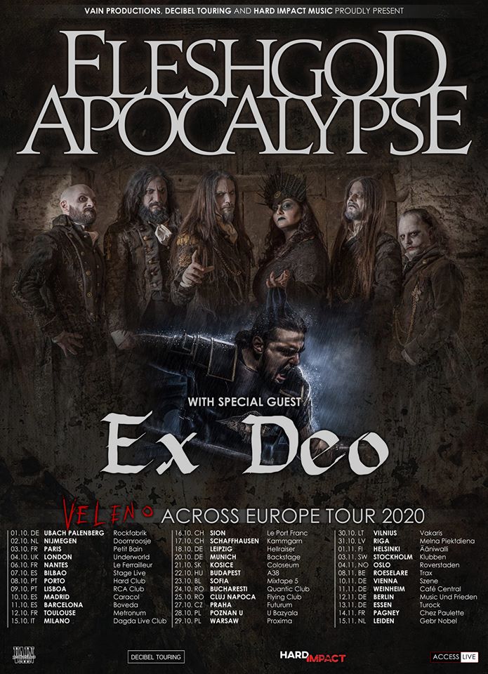 A technikás olasz death metal zenekar Veleno címmel május 24-én jelentette meg ötödik nagylemezét, ezt megelőzően legutóbb King címmel hoztak ki lemezt 2016-ban. A Jacob Hansennel készített Veleno borítóját Travis Smith készítette, és a csapat első munkája a két évvel ezelőtt távozott Tommaso Riccardi énekes/gitáros és Cristiano Trionfera gitáros nélkül: őket Fabio Bartoletti gitáros és David Folchitto dobos váltotta, az énekért pedig ismét a főnök, Francesco Paoli felel. A Fleshgod Apocalypse 2020 októberében Európa-turnéra indul majd a lemezzel, méghozzá a Kataklysm-vezér Maurizio Iacomo másik csapatával, a 2008-ban beindított Ex Deo-val. A turnénak lesz magyar állomása is, október 22-én az A38 Hajón.