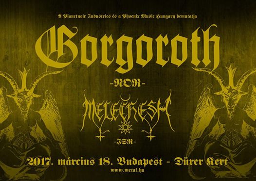 Hétvégén ismét Budapesten pusztít a norvég Black metál egyik zászlóshajója a Gorgoroth. A 25 éves zenekar ezúttal a Dürer Kert falait fogja megtépázni, nem is akármilyen társaságban. Érkezik a sumér és mezopotámiai hangulatot megidéző Melechesh, a klasszikusabb metálban utazó amerikai Incite, valamint az ausztrál death metál egyik kiemelkedő képviselúője az Earth Rot.