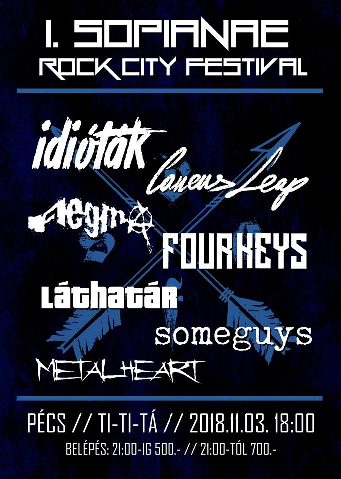 A rendezvényre sok szeretettel várnak mindenkit, akik nyitottak a kevésbé ismert zenekarokra. A belépő senki pénztárcáját sem fogja túlterhelni, hiszen 21 óráig mindösszesen 500 forint a belépő, utána pedig 700 forintért lehet bebocsájtást nyerni az I. Sopianae Rock City Festivalra.