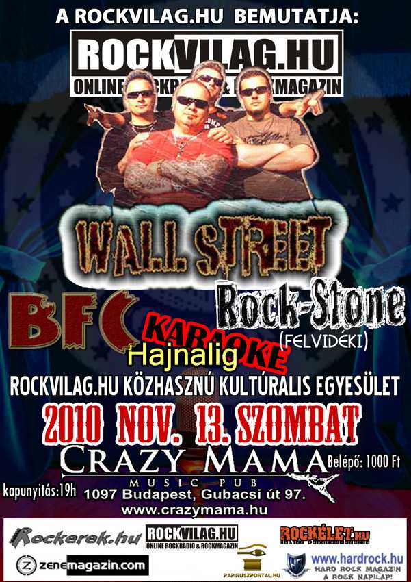 Az este fő fellépője az idén új lemezzel jelentkezett Wall Street zenekar.