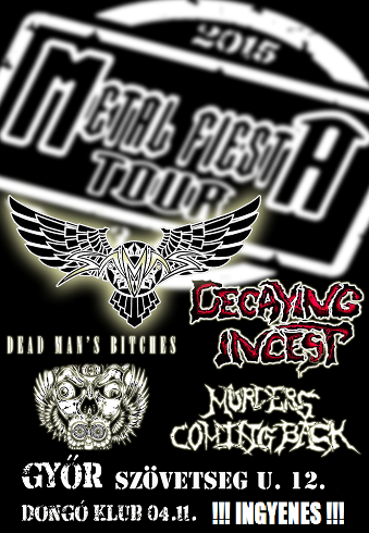 Április 11-én, a győri Dongó Romklubban kerül megrendezésre a Metal Fiesta Tour első állomása. A négy fellépő banda – Samas, Murders Coming Back, Decaying Incest és a Dead Man’s Bitches egy ingyens buli keretein belül próbálja a metal zene szerelmeseit a klubba csábítani. Győrből elég régóta nem érkezett hír ilyen jellegű eseményről, de reméljük, hogy a rock és a metal iránti szeretet nem halt ki teljesen a kisalföldi megyeszékhelyről, és az ilyen eseményeket még több is követni fogja.