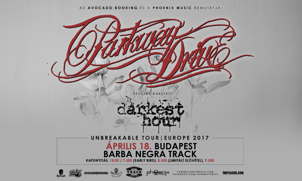 Gyakorlatilag nem maradt szó, amit ne mondtunk volna el a Parkway Drive-ról, jó ismerőseink régóta, hiszen 2017-ben lesz 11 éve, hogy visszajárnak fővárosunkba, ráadásul különös pikantériája lesz az estének, hogy az a Washington DC-beli punk/metal Darkest Hour lesz vendégük, akik előtt szinte ismeretlen zenekarként legelső alkalommal felléptek nálunk, még a megboldogult Kultiplexben 2006. nyarán. Az ausztrál metalcore óriások javában turnéztatják tavalyi, Ire című lemezüket és ennek, az Unbreakable Tour 2017 nevet kapott körútnak keretében térnek vissza hozzánk.