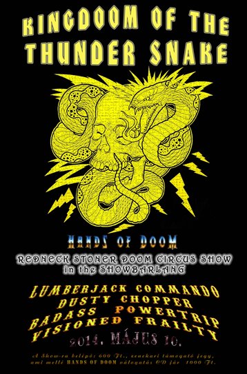 Hands Of Doom Villám Kígyó cirkusza bemutatja a ShowBarlang gladiátor arénájában redneck stoner doom showját. Eredeti southern redneck, booze and doom hangulat.