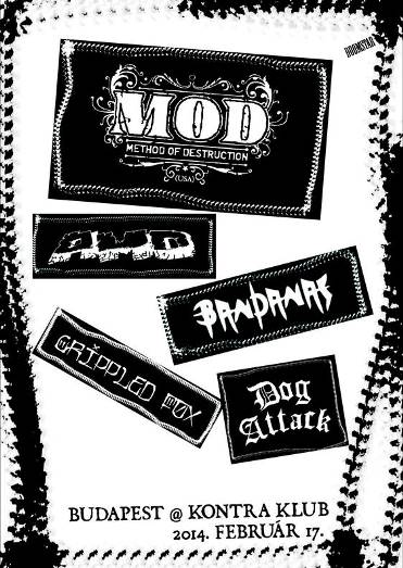 Február 17.-én gyilkos hardcore bulira van kilátás, a Kontra Klubban. Először játszik kicsiny hazánkban az amerikai M.O.D. (Method Of Destruction) Billy Milano vezetésével. Egy kis múltidézés: 85’-ben Milano énekelt az S.O.D. – Speak English Or Die! lemezén, amit két Anthrax és Nuclear Assault taggal dobtak össze. Az azóta etalonná váló lemez sikere ellenére, egy turné után Billy kivételével mindenki visszatért fő zenekarába. Ő 86’-ban megalakította az M.O.D.-t és csináltak pár nagyon jó lemezt, jó arányba kevergetve a trash és a hardcore jellegű témákat. A hardcore és metál fanoknak szinte kötelező koncert, a koncert videókat nézegetve Billy Milano tudja, hogyan kell hangulatot csinálni.
