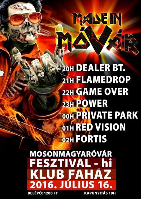 Július 16-én, a mosonmagyaróvári Faházban kerül megrendezésre a hagyományos Made in Móvár fesztivál. 1200 forint ellenében olyan zenekarokat nézhetnek és hallgathatnak meg az érdeklődők, mint a punk rockban utazó Dealer BT, a melodic death metalos FlameDrop, a Game Over, a Demonlordból ismert Világi Zoolika által vezetett PoWeR, az alternatív Private Park, a Tombstone zenekar tagjaiból frissen alakult Red Vision, nekik ez a bemutatkozó bulijuk is, és a program zárásaként, hajnali 2 órakor a Fortis.