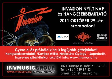 2011. október 29-én nyílt nap lesz az INV Musicnál, a Superbutt két remek gitárosának, Kovács Attilának, és Nedoluha Györgynek a közreműködésével. A fiúk megmutatják a pengetés csínját-bínját a megjelenő kedves érdeklődőknek, ahol mindenki kedvére ki is próbálhatja a legújabb hangszereket. A helyszínen egész nap ingyenes gitárklinikával állnak a látogatók rendelkezésére, Attila és Nedó is segít beállítani azokat, ha valakinek gondja van, illetve bárminemű kardinális kérdésre is szívesen válaszolnak, egyfajta gitáros fórum készülődik, ahol akármilyen zenei dologgal kapcsolatban lehet majd beszélgetni, tanácsot adni egymásnak, világot megváltani, egyszóval minden lesz, ami hangszerrel kapcsolatos. 🙂 A hangszerüzlet jóvoltából pedig három nyereménycsomag is kisorsolódik a látogatók között.