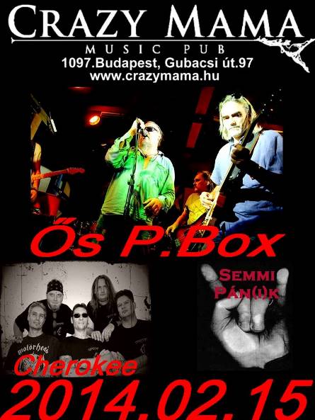 Február 15-én, a Sáfár Öcsi által fémjelzett Ős P.Box zenél a Crazy Mama színpadán. A zenekar 2010-ben lemezt is megjelentetett, melyre 12, a P.Box hagyományokat folytató remek nóta került. Akik anno rajongtak ezért a stílusért, most nem fognak csalódni. Ezen az estén két vendégzenekar melegíti be a Crazy Mama színpadát. A Pater, illetve Fuckkezű által két kollégánkat is soraiban tudó Semmi Pán(i)k és a második lemezén dolgozó Cherokee. A buli este 9-kor kezdődik, az eseményhez pedig itt tudtok csatlakozni.