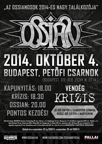 A ma esti koncertre érdemes lesz korán érkezni, mert a Krízis már fél hétkor kezdi a programot, az Ossian pedig este 8-kor színpadra lép.