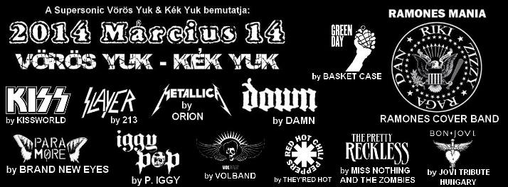 Március 14 –én, azaz most pénteken az óbudai Vörös Yuk & Kék Yuk -ba egy elég nagy volumenű tribute fesztivál várja az odalátogatókat! Olyan zenekarok tribute bandáihoz lesz szerencsénk, mint a Kiss, Ramones, Bon Jovi, Red Hot Chili Peppers, Green Day, Iggy Pop, The Pretty Reckless, Metallica, Slayer, Down, Paramore és a Volbeat.