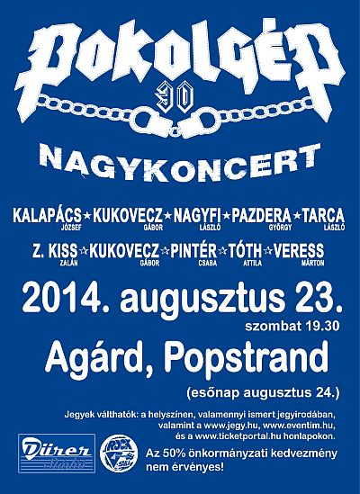 2014. augusztus 23-án Agárdon, a magyar pop és rockzene egyik legrégebben működő szentélyében áll színpadra a csapat, ahol ismét felhangzanak a legendás metál slágerek. A látványvilág, a hangtechika is méltó lesz az eseményhez, hatalmas show keretében nyomul majd a színpadon az együttes. Ezen az estén emlékezik a zenekar a közelmúltban elhunyt Gondosch Güzü Jánosra, akinek utolsó munkája a Pokolgép Pecsa koncertjének pirotechnikai tervezése és kivitelezése volt… Gyönyörű helyszínen, fantasztikus metál koncert,agusztus 23-án mindenkinek Agárdon a helye!