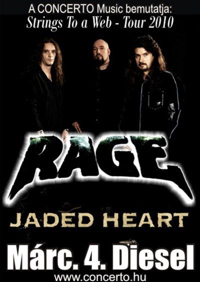 A legendás germán heavy metal banda szerencsére soron következő turnéjából sem hagyta ki Magyarországot. Már többször is megfordultak nálunk, s hála a fergeteges buliknak és a lelkes közönségnek, mindig visszatérnek. A Helloween és a Running Wild mellett sikerre törő triótól egy tradicionális, hibátlan igazi metal koncertre lehet számítani március 4-én, Budapesten a Dieselben! A Rage története 1984-re nyúlik vissza, mikor debütáló lemezük megjelent Prayers of Steel címmel. Hamar megszerették a zenekar dalait, folyamatosan koncerteztek, ennek is köszönhető, hogy az 1992-es Trapped-del már a nemzetközi áttörést is elkönyvelhették. Úttörő szerepet játszottak a klasszikus heavy metal és a szimfonikus zene összeházasításában, s lemezeik a német heavy/power metal alapjait jelentik. 1998-ban csatlakozott Victor Smolski a zenekarba, aki egy kivételes gitáros és már rengeteg számban csodálhattuk dalszerzői képességeit is.