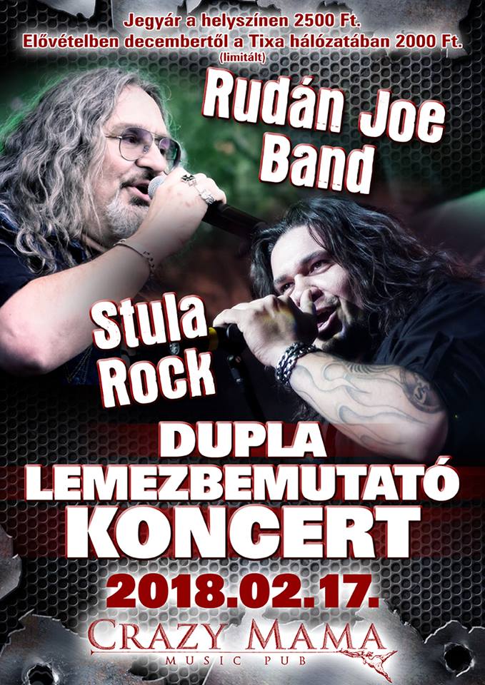 2018. elején Rudán Joe és zenekara, illetve Molnár Stula Péter bandája is új lemezzel jelentkezik. Hogy még nagyobbat szóljon ez a két új korong, a két csapat dupla lemezbemutató koncertet szervez, február 17-én, a Crazy Mamában.