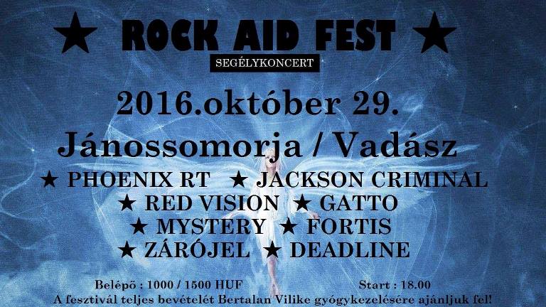 Egy beteg kisgyermek, Bertalan Vilike gyógykezelésének a támogatására gyűlnek össze, és adnak koncertek a rockzenészek október 29-én, Jánossomorján. A somorjai Vadász vendéglőben koncertet ad majd a Phoenix RT, a Red Vision, a Deadline, a Jackson Criminal, a Zárójel, a Mystery, a Gatto, és a Fortis zenekar.
