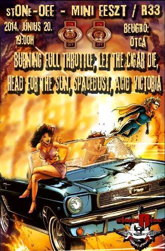 Ezen a nyáron is az R33 ad otthont az, I. stonRise Feszt folytatásának is nevezhető stONe-OFF Mini Fesztnek! Idén próbáltunk csak magyar előadóra koncentrálva megidézni eme sivatagi gyökerekkel bíró műfaj szellemét. Lesz Doom, Space, Desert, Fuzz, és Drive Rock, a teljesség igénye nélkül, de igényesen bemutatva a stílus minden formáját. Ráadásul, újra egy színpadon látható a stoner.blog.hu, és a stoneRise Portal három barát zenekara a Spacedust, a Head For The Sun, és a Burning Full Throttle! Csatlakozik még a Tiszakécske lápvidéke által inspirált Let The Cigar Die csapata, és akinek megvolt Kőkorszak Királynőinek összes udvarhölgye az, Acid Victoria!
