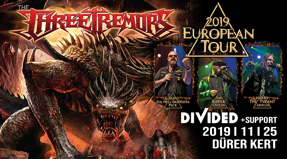 A hazai divideD meghívására november 25-én a Dürer Kertben koncertezik az a The Three Tremors, amelyben a metal színtér három legendás énekese, Tim “Ripper” Owens (ex-Judas Priest, ex-Iced Earth stb.), Harry “The Tyrant” Conklin (Jag Panzer), valamint Sean “The Hell Destroyer” Peck (Cage, Death Dealer, Denner/Shermann) egyesítette erőit. Az új power metal formációnak az év elején jelent meg a debütáló nagylemeze, a divideDnek hála, pedig élőben is megnézhetjük őket. A három gigaénekes koncerteken lévő háttérzenekarát pedig a Cage zenészei alkotják majd: David Garcia (gitár), Casey Trask (gitár), Alex Pickard (basszusgitár) és Sean Elg (dob).