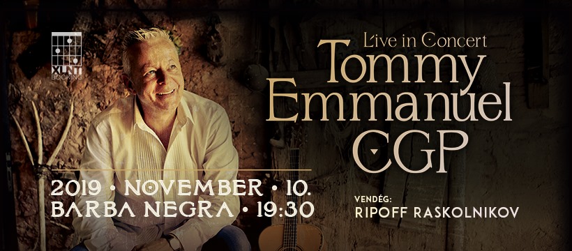 Több mint öt évvel legutolsó budapesti fellépése után november 10-én a Barba Negra Music Clubban koncertezik Tommy Emmanuel. Vendég: Ripoff Raskolnikov. Az ausztráliai születésű zenészt minden idők egyik legnagyobb hatású gitárosának tartják, aki szóló fellépésein egyszemélyes zenekarként nyűgözi le a közönséget.