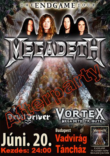 2010 június 20-án a Megadeth koncertet követően afterparty-val vár minden érdeklődőt a Vortex – Megadeth Tribute zenekar a Vadvirág táncházba kb. 24:00h-tól.