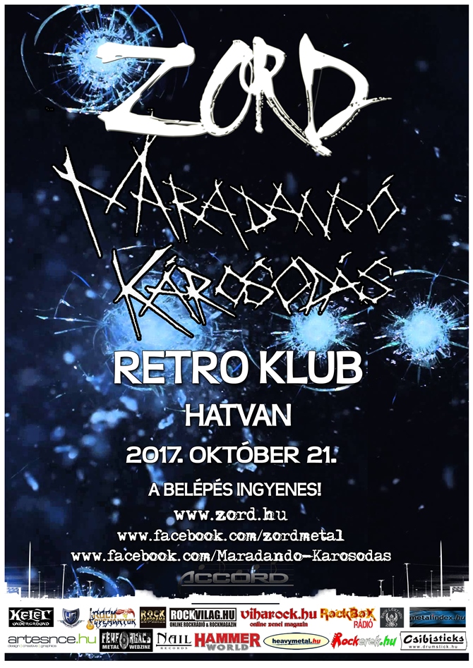 Október 21-én újra együtt zenél a Zord és a Maradandó Károsodás. Ezúttal a hatvani Retróban dübörög majd a thrash metal, és a koncertekre a belépés ingyenes! A miskolci Zord az utolsó simításokat végzi harmadik nagylemezén, így ezen a koncerten már biztosan hallhattok néhány nótát a hamarosan megjelenő új korongról.