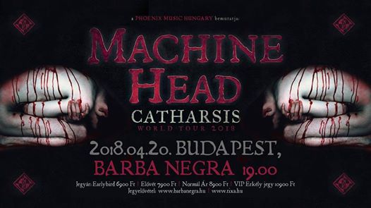 Mostanra, Zack Ohren (All Shall Perish, Fallujah) producer segítségével otthon, Oaklandben befejezte új albumának felvételeit a Machine Head, és ennek bejelentésével együtt azt is nyilvánosságra hozták, hogy január végétől már az új anyaggal indulnak majd amerikai turnéra, mégpedig vendégcsapat nélkül. A kilencedik Machine Head album Catharsis címmel 2018. január 26-án jelenik meg. A banda egy nappal előtte,  január 25-én már bele is csap a tengerentúlon a lemezbemutató turnéba, méghozzá igen alapos, an evening with…-típusú koncertekkel, azaz két és fél, három órás bulikat nyomnak majd le. A körút egészen március első feléig tart. Külön öröm számunkra, hogy a 2015. szeptemberi, történelmi jelentőségű és monstre hosszúságú első magyarországi headline koncertje után újra Budapesten koncertezik majd a Machine Head! A januárban érkező Catharsis lemezük világkörüli turnéjának keretein belül április 20-án térnek vissza Robb Flynnék a Barba Negra színpadára!