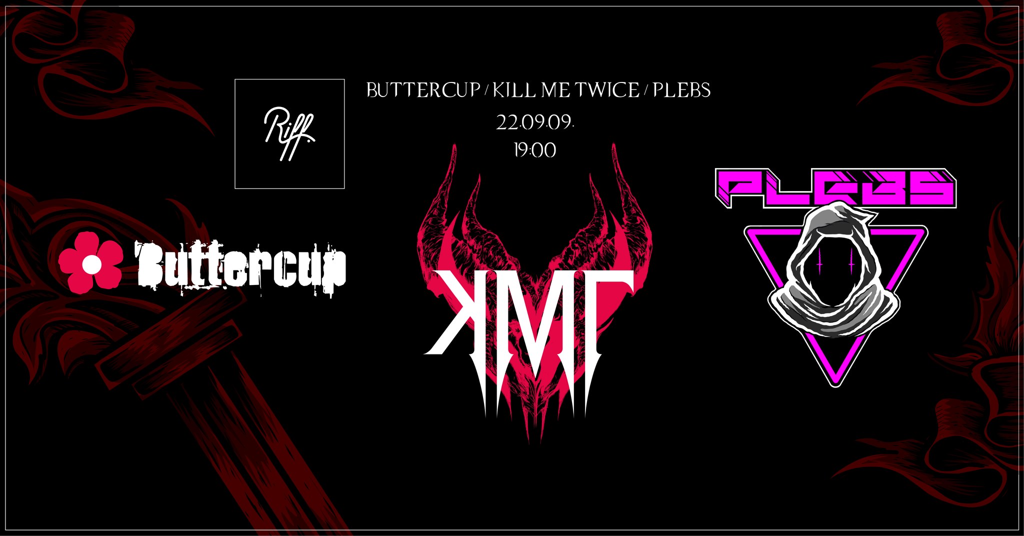 Szeptember 9. egy igen érdekes és izgalmas este lesz az underground rock-metált kedvelők számára a budapesti RIFF Klubban. A három fellépő nem csak hírből ismeri egymást, hanem közös múltjuk is van, ráadásul a nemek eloszlása is majdnem egységes lesz. Írhatnánk, hogy fiúk vs. lányok, de ez nem fedné teljesen a valóságot, főleg, hogy nem egymás ellen, hanem együtt muzsikálás fog történni. Nincs fő- és előzenekar, szimplán csak a Buttercup, a Kill Me Twice és a PLEBS fogják boldogítani a nagyérdeműt.