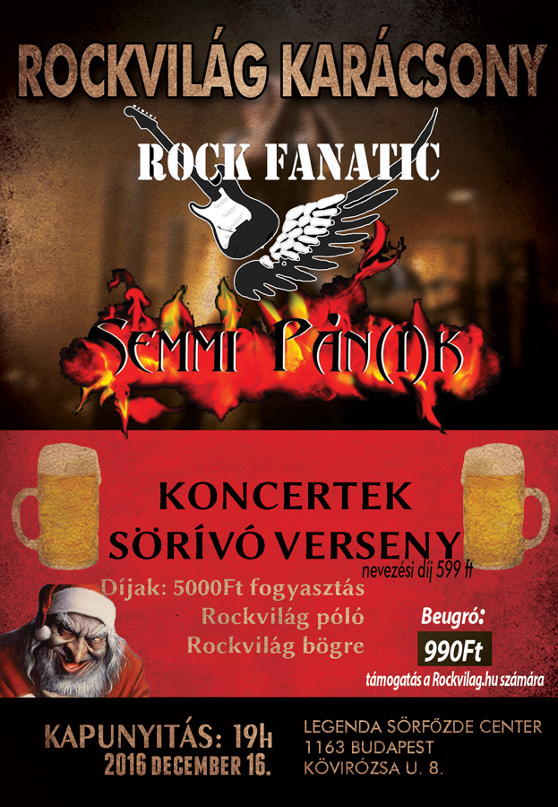 Mit szólnátok egy jó kis rock bulihoz még karácsony előtt? Legyen jó zene, jó italok, finom ételek, jó társaság, és jó hangulat! A jó zenét megígérjük. Garancia rá a Rock Fanatic és a Semmi Pánik zenekarok jelenléte, mi több, fellépése. A jó italokat és finom ételeket a Legenda Sörfőzde biztosítja ahogy a helyszínt is.