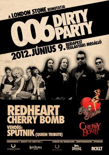 A RedHeart együttes legutóbb Pécelen szórakoztatta a nagyérdeműt egy motoros parkban és most már javában készülnek a Cherry Bomb hölgyeményeivel a következő Dirty Partyra, aminek a Téglagyári Megálló ad otthont június 9-én.A Dirty Party bulikon megszokhattuk már, hogy a legjobb rock and roll muzsikák csendülnek fel. Ezúttal vagy írhatnánk azt is, hogy ismét, két olyan banda lép majd a színpadra, akik már bizonyítottan be vannak oltva a rock and rollra!