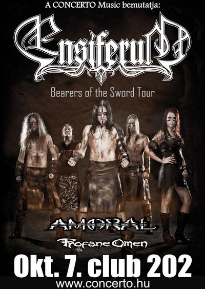Hosszú ideje várt új albumával érkezik Budapestre október 7-én az egyik legsikeresebb finn folk metal zenekar, az Ensiferum. A hazánkban is népszerű, és időről időre visszatérő együttes legújabb hősi énekei mellé két további finn bandát, az Amoralt és a Profane Oment is elhozza a Club 202-be.